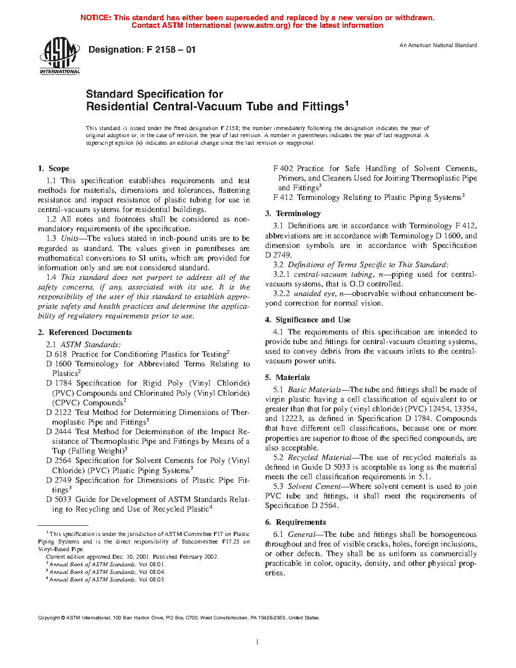 1.1 This specification establishes requirements and test methods for materials, dimensions and tolerances, flattening resistance and impact resistance of plastic tubing for use in central-vacuum systems for residential buildings.