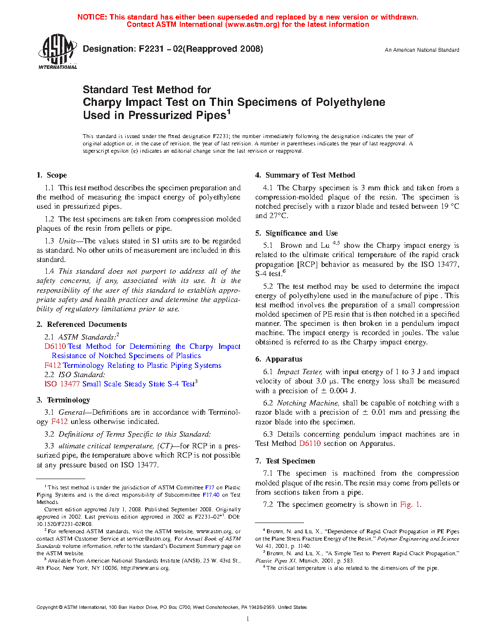 5.1 Brown and Lu4,5 show the Charpy impact energy is related to the ultimate critical temperature of the rapid crack propagation [RCP] behavior as measured by the ISO 13477, S-4 test.6