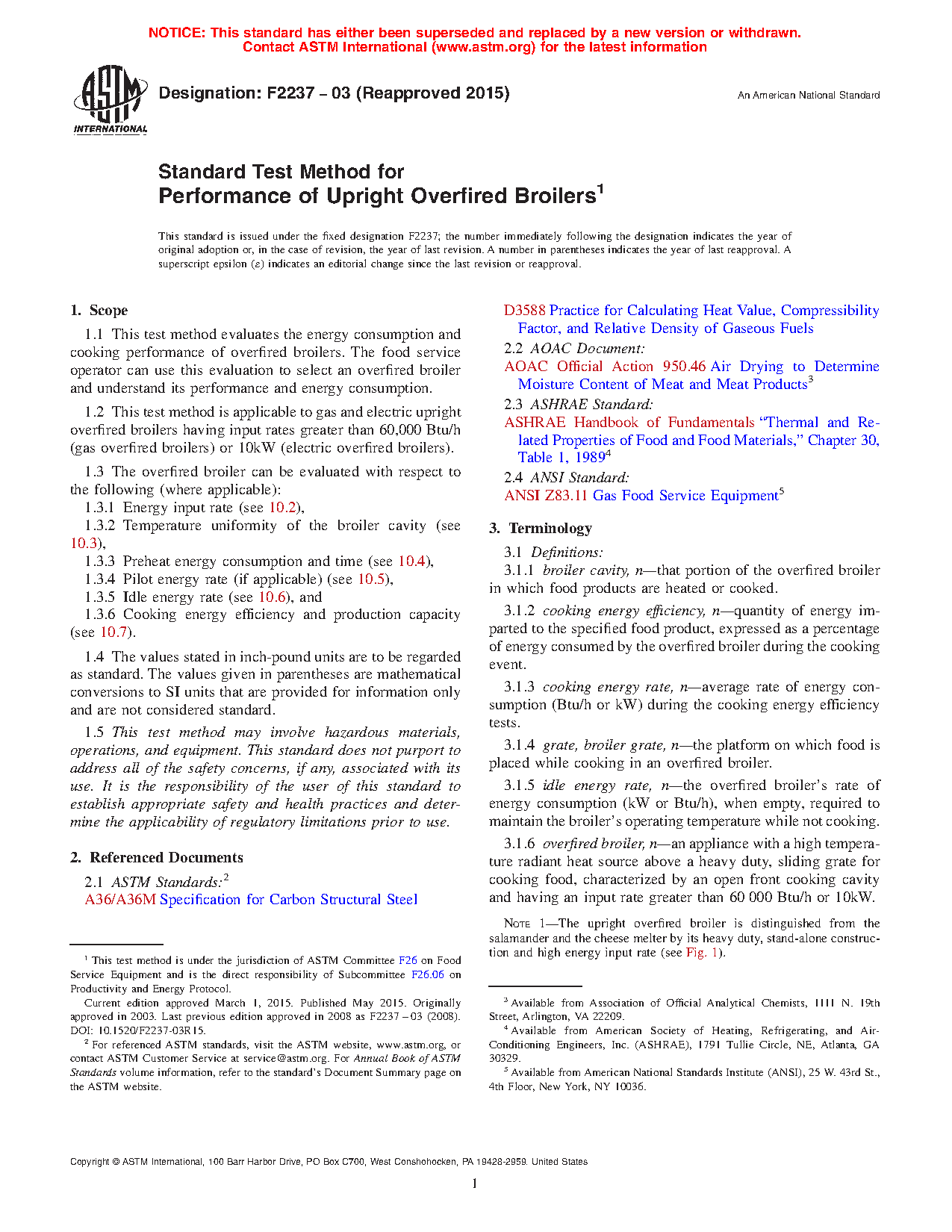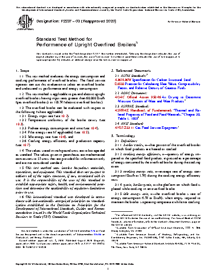 1.2 This test method is applicable to gas and electric upright overfired broilers having input rates greater than 60,000 Btu/h (gas overfired broilers) or 10kW (electric overfired broilers).