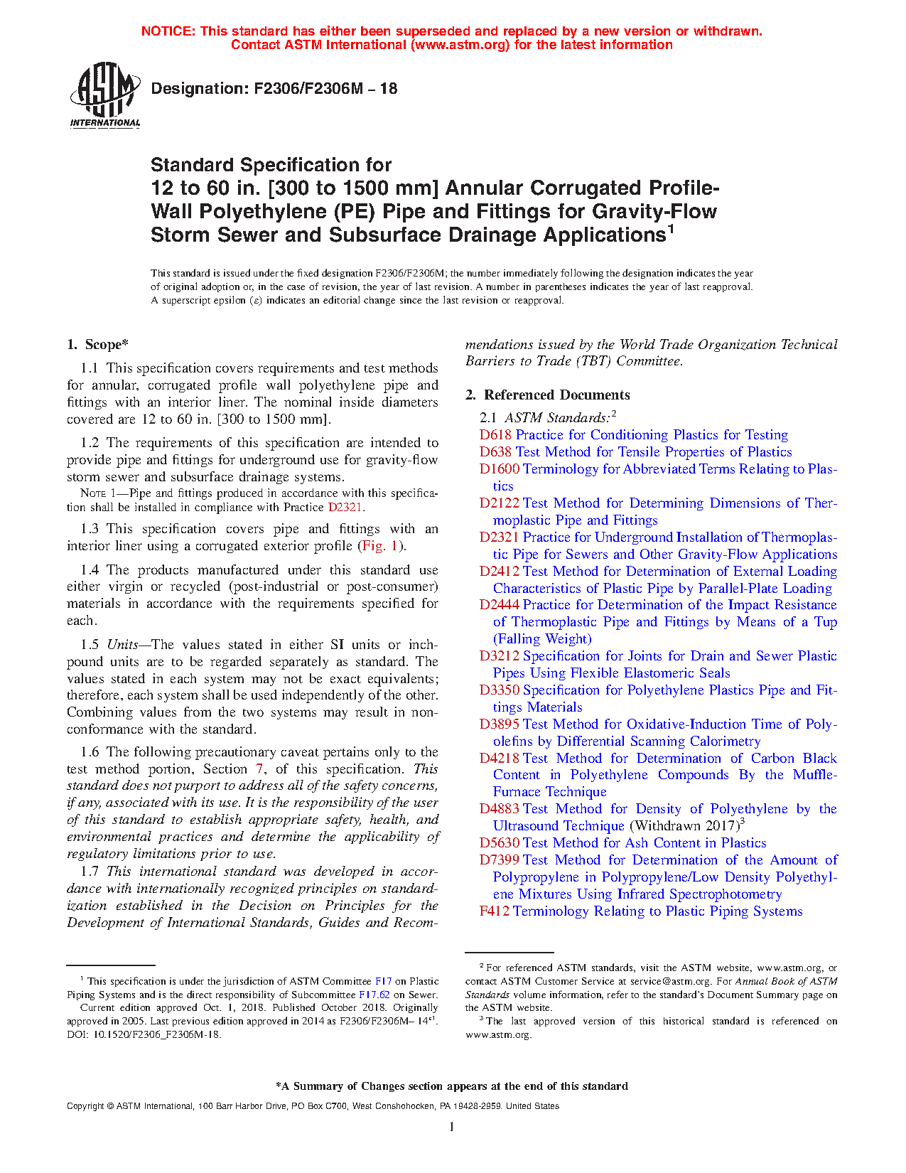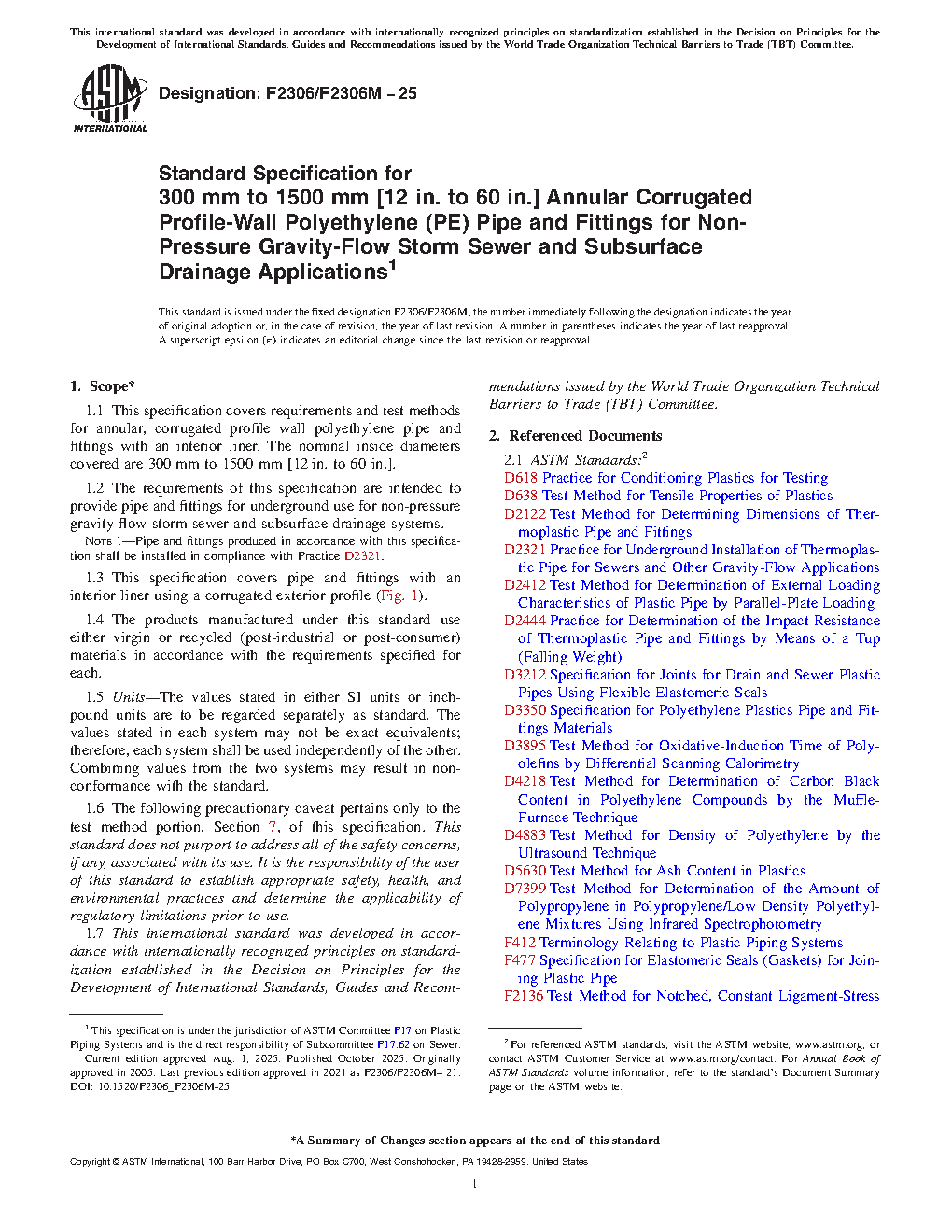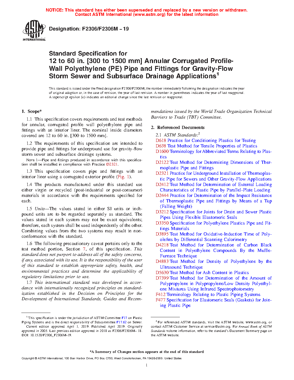 1.2 The requirements of this specification are intended to provide pipe and fittings for underground use for non-pressure gravity-flow storm sewer and subsurface drainage systems.