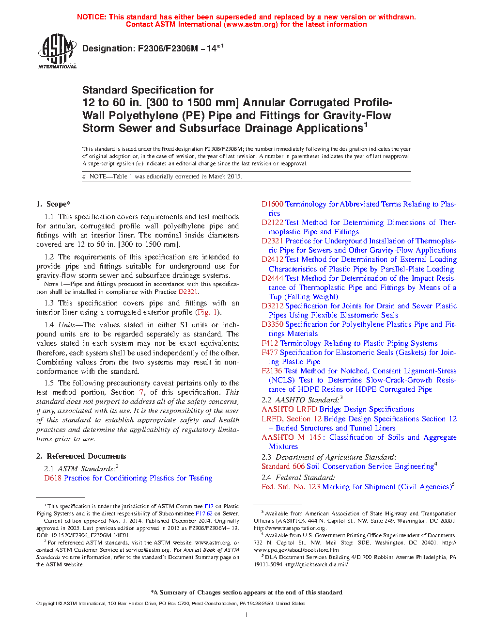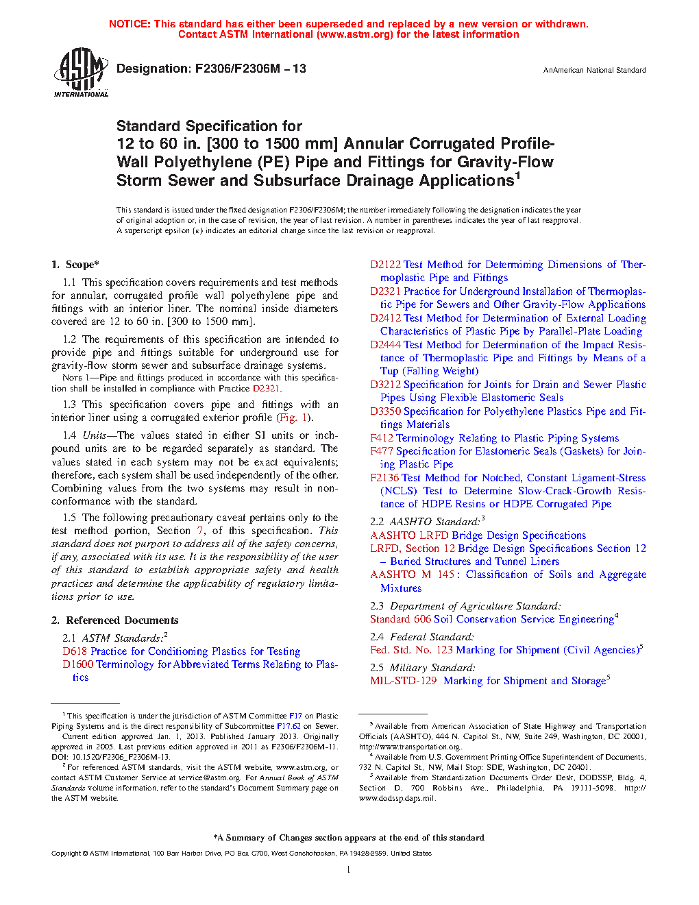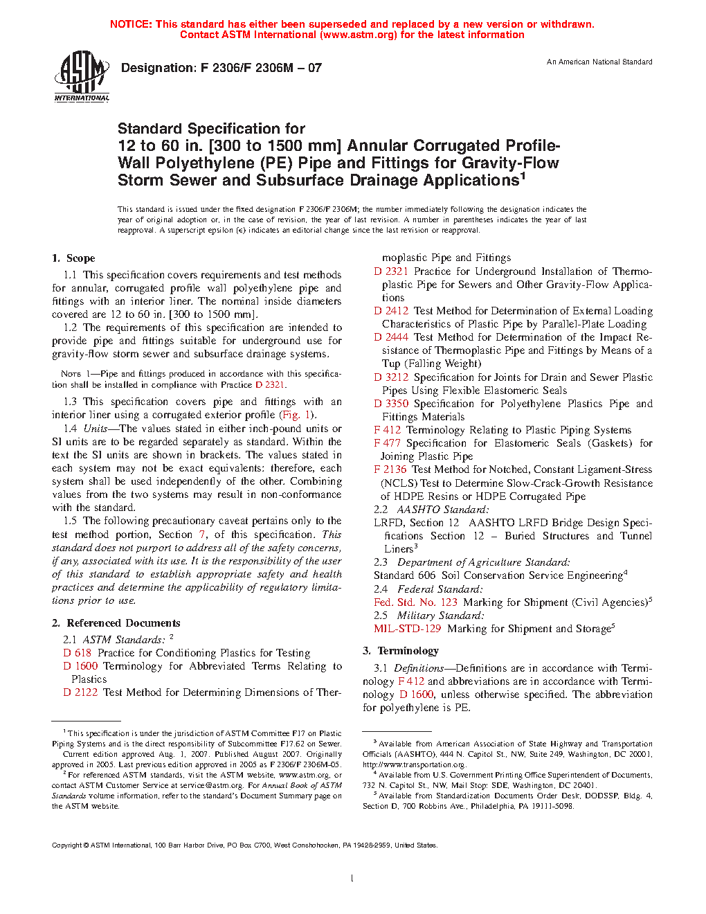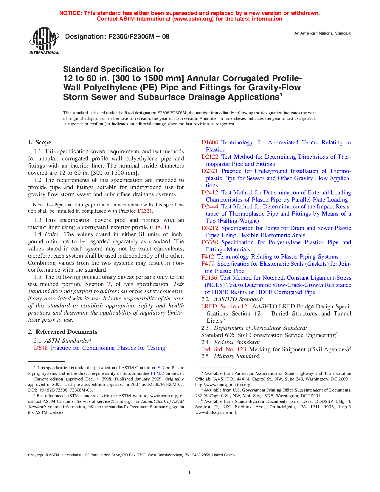 1.2 The requirements of this specification are intended to provide pipe and fittings for underground use for non-pressure gravity-flow storm sewer and subsurface drainage systems.