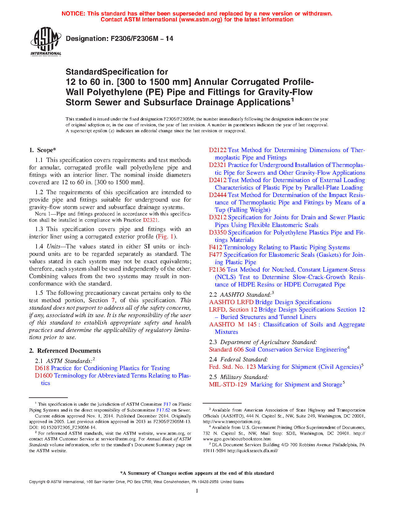 1.3 This specification covers pipe and fittings with an interior liner using a corrugated exterior profile (Fig. 1).