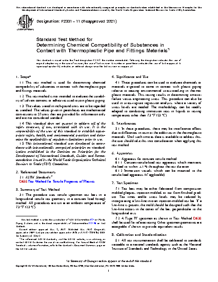 1.1 This test method is used for determining chemical compatibility of substances in contact with thermoplastic pipe and fittings materials.