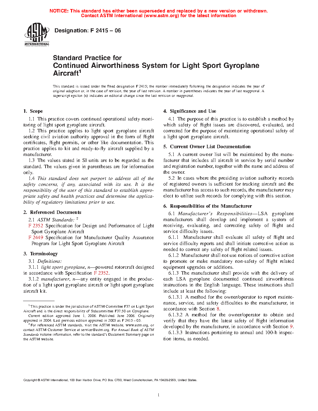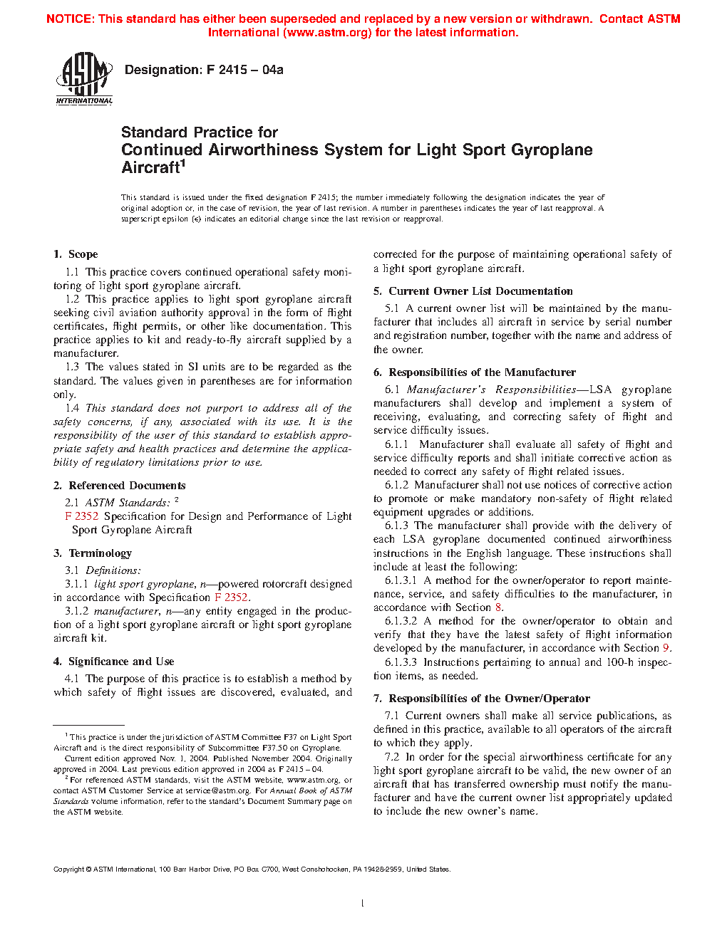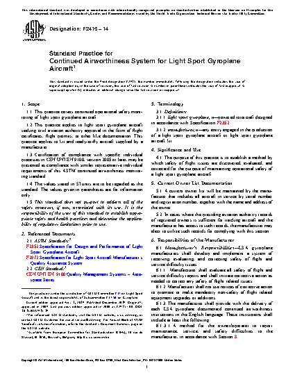 1.1 This practice covers continued operational safety monitoring of light sport gyroplane aircraft.