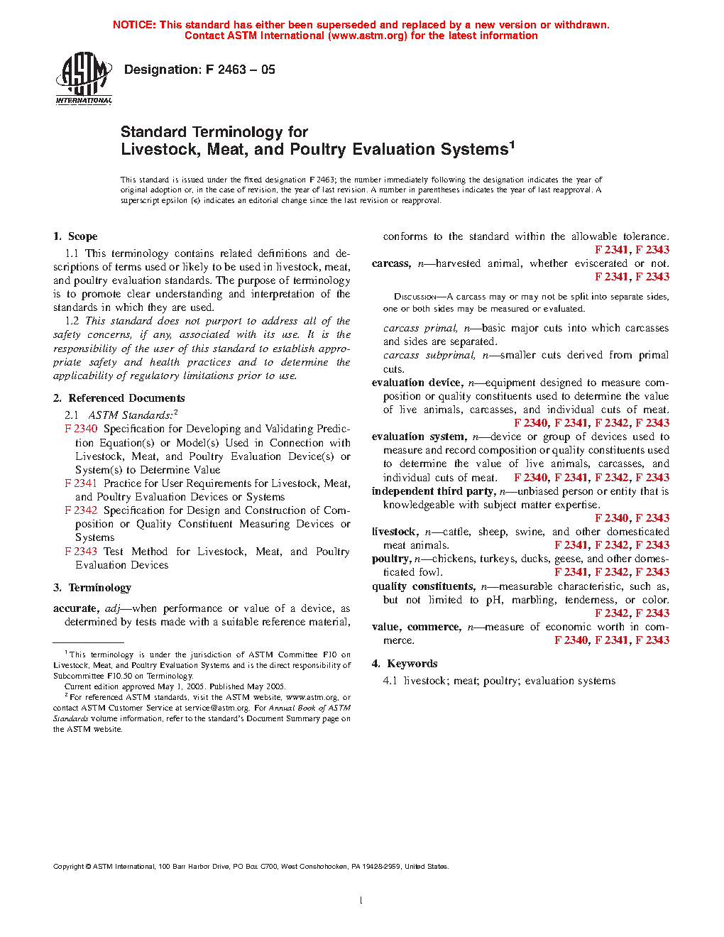 Standard Terminology for Livestock, Meat, and Poultry Evaluation Systems