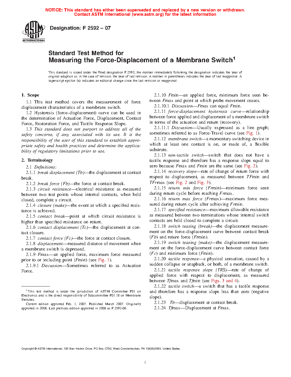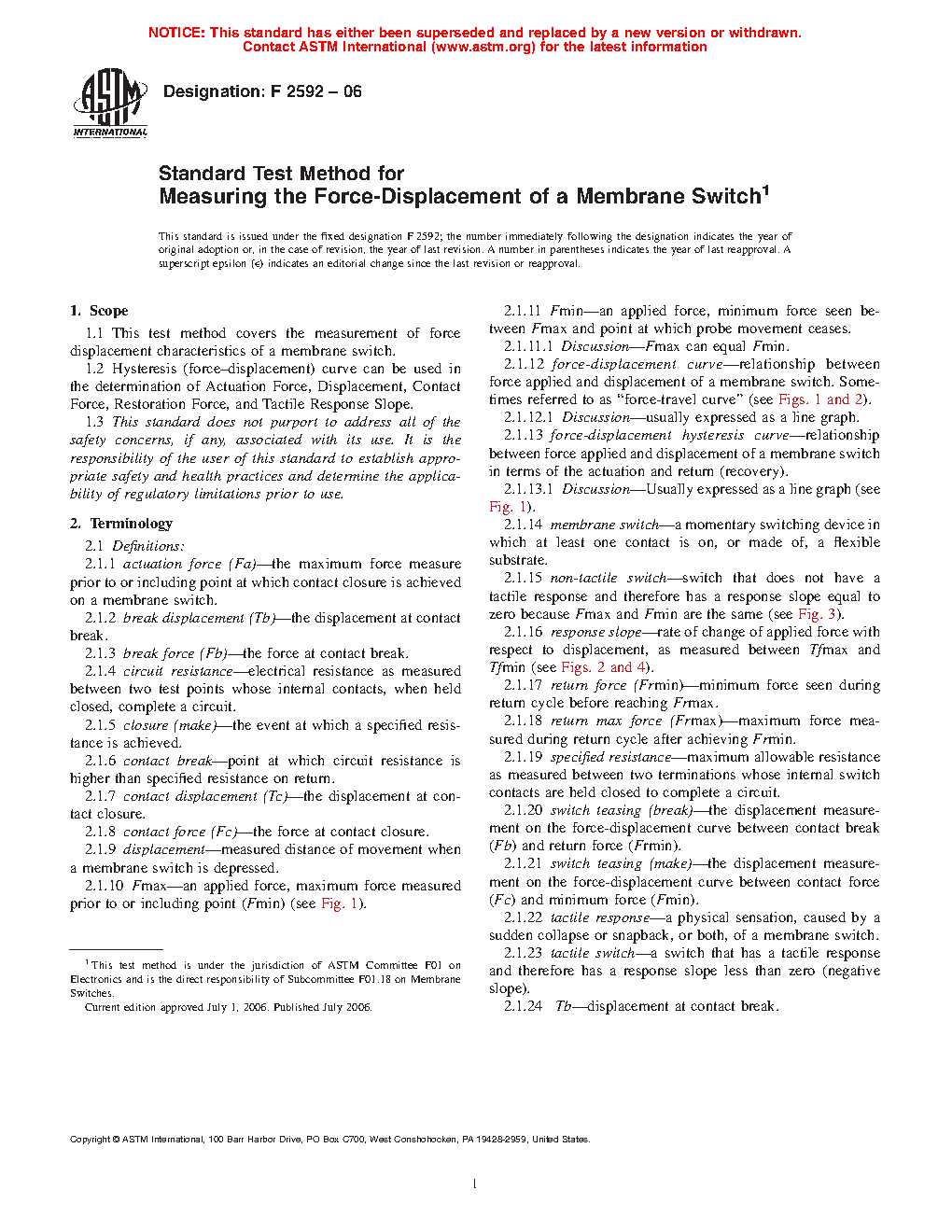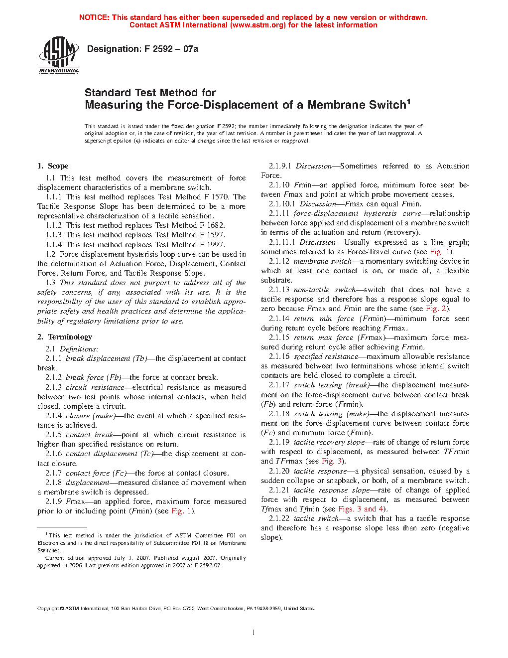 1.1.3 This test method replaces Test Method F1597 (Actuation and Contact Force).
