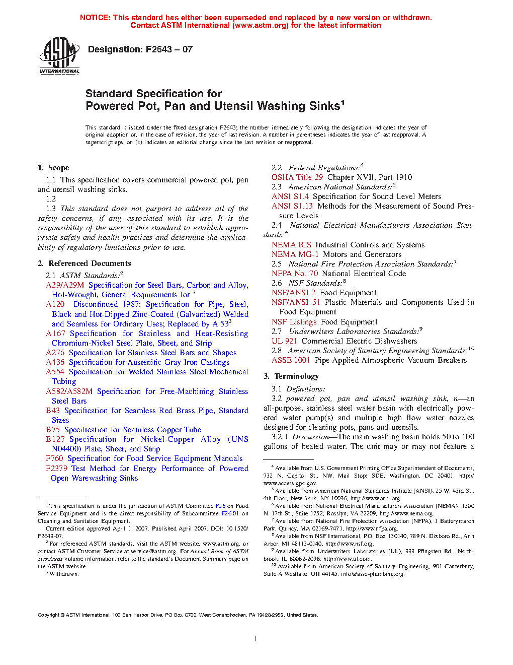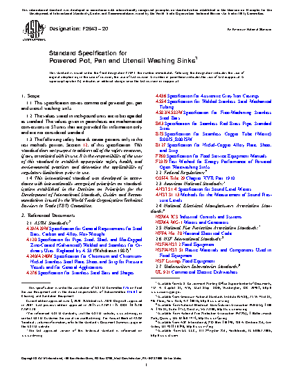 1.1 This specification covers commercial powered pot, pan and utensil washing sinks.