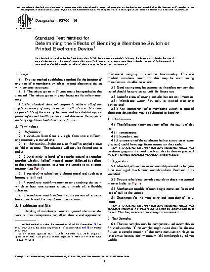 3.1 Bending of membrane switches, printed electronic device or their components can affect their visual appearance, mechanical integrity or electrical functionality. This test method simulates conditions that may be seen during manufacture, installation or use.