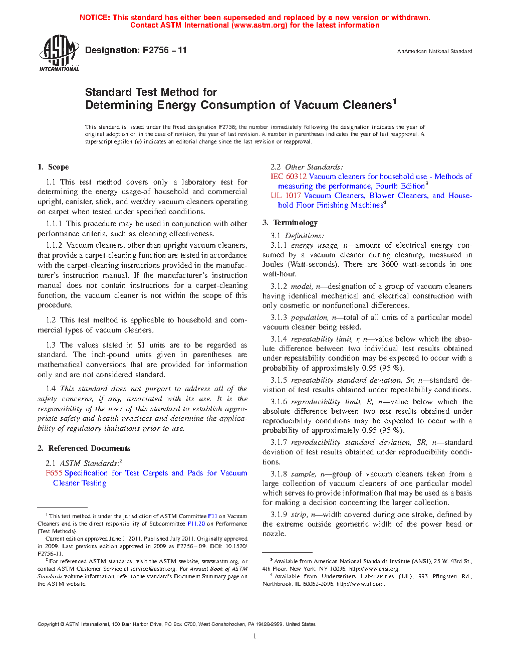 This test method provides an indication of the amount of energy usage of the vacuum cleaner while operating over a specified cleaning area at a specified stroke speed and total number of cleaning strokes.
