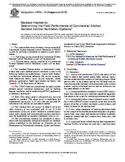 1.1 This practice determines the energy savings potential of Commercial Kitchen Demand Control Ventilation (CKDCV) systems by outlining a procedure to measure system performance.