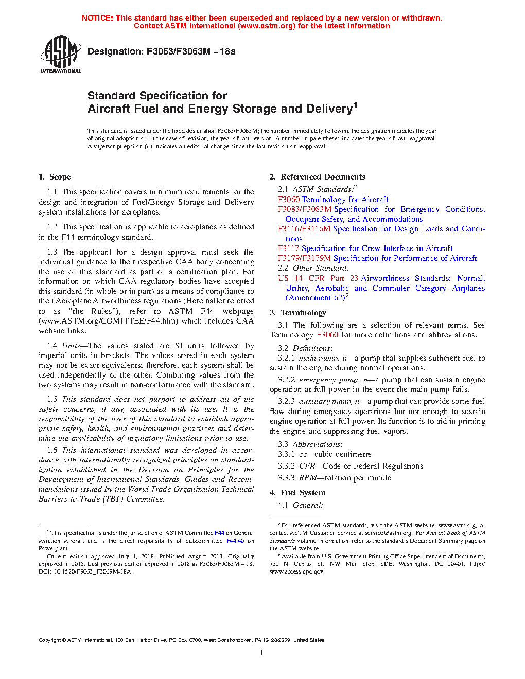 1.1 This specification covers minimum requirements for the design and integration of Fuel/Energy Storage and Delivery system installations for aeroplanes.