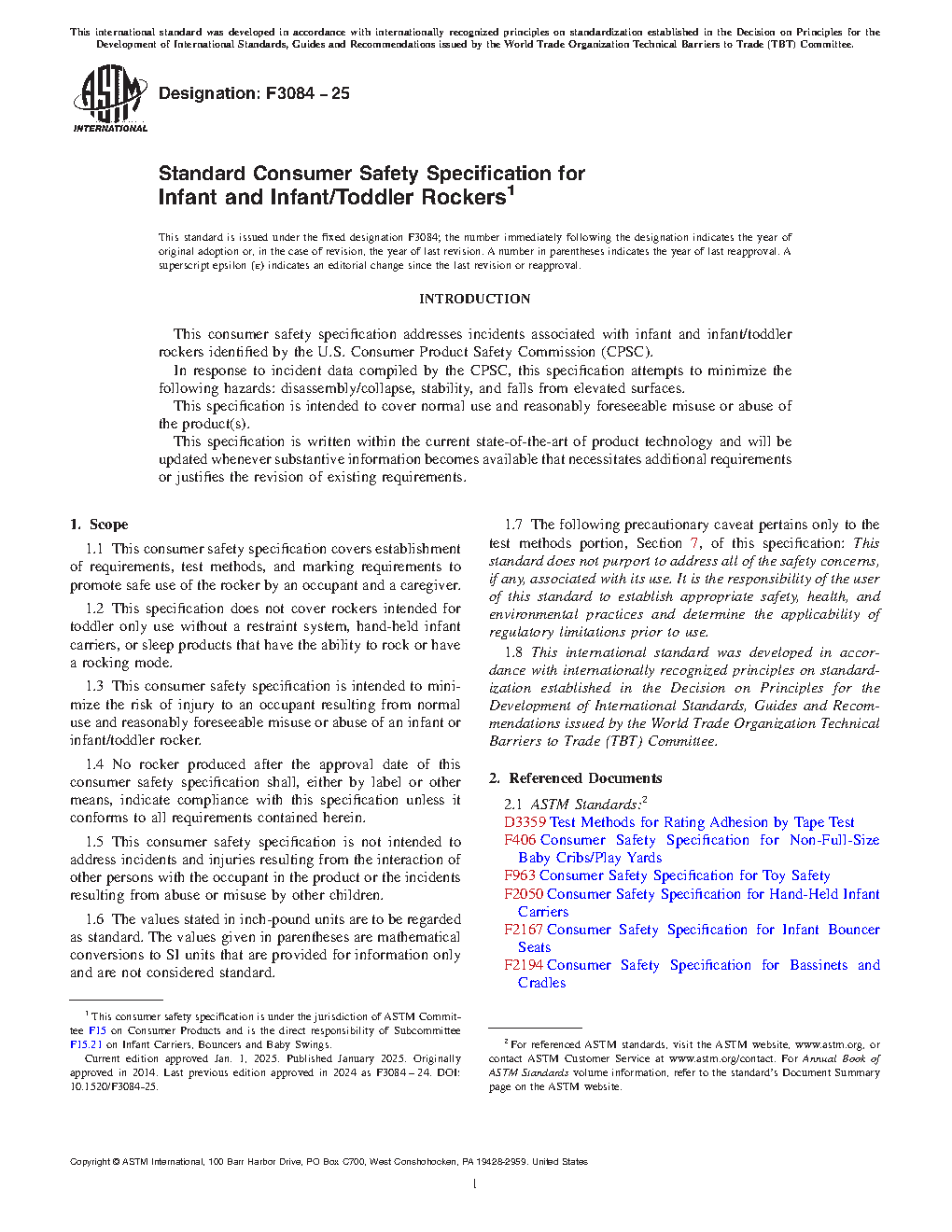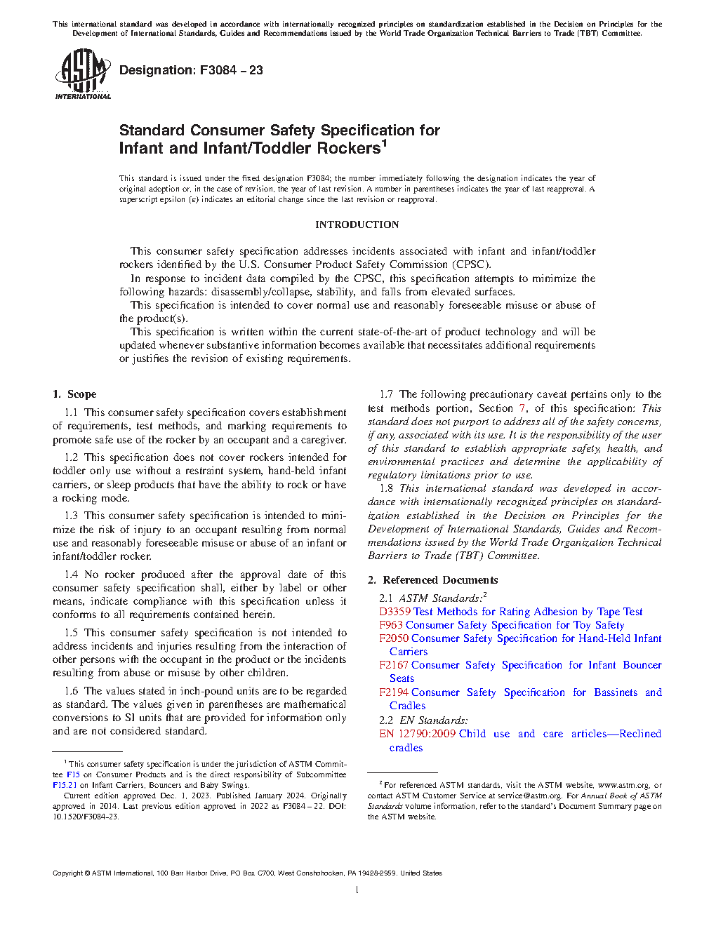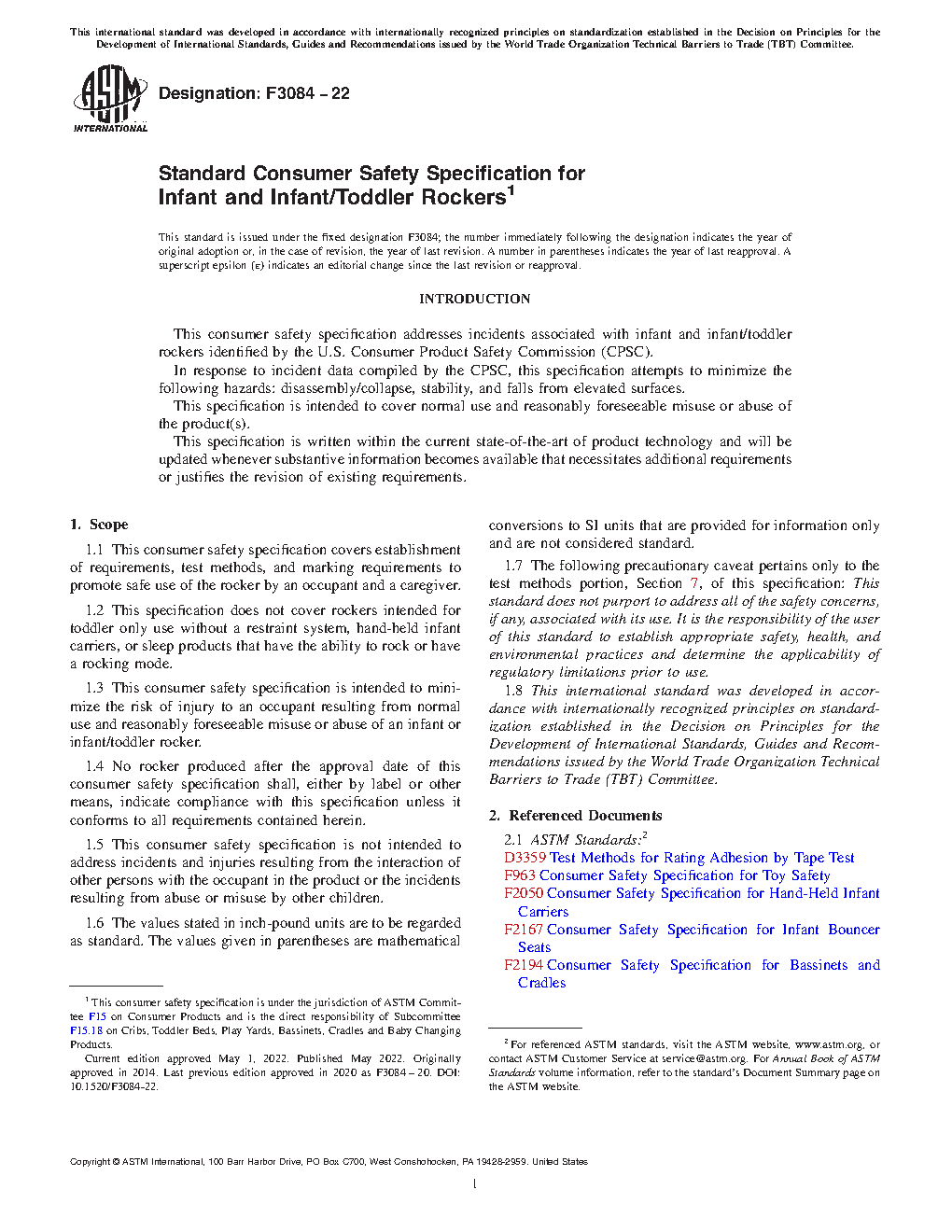 1.1 This consumer safety specification covers establishment of requirements, test methods, and marking requirements to promote safe use of the rocker by an occupant and a caregiver.