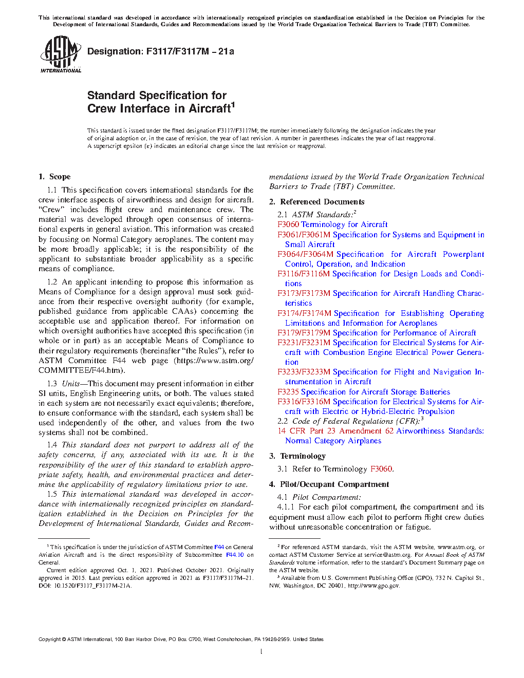 1.2 An applicant intending to propose this information as Means of Compliance for a design approval must seek guidance from their respective oversight authority (for example, published guidance from applicable CAAs) concerning the acceptable use and application thereof. For information on which oversight authorities have accepted this specification (in whole or in part) as an acceptable Means of Compliance to their regulatory requirements (hereinafter “the Rules”), refer to ASTM Committee F44 web page (https://www.astm.org/COMMITTEE/F44.htm).
