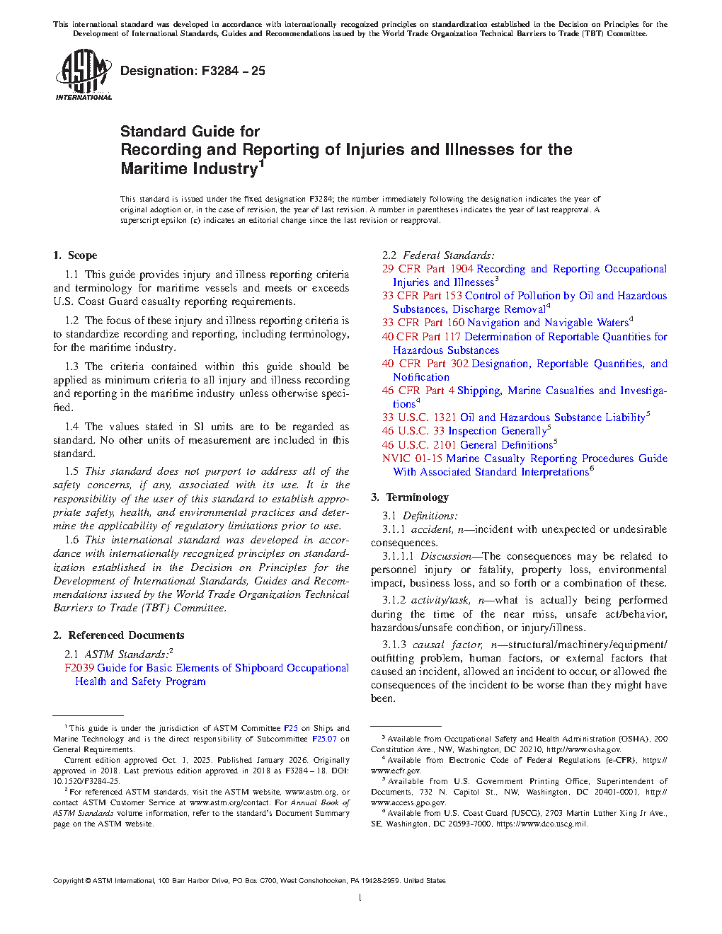 1.1 This guide provides injury and illness reporting criteria and terminology for maritime vessels and meets or exceeds U.S. Coast Guard casualty reporting requirements.