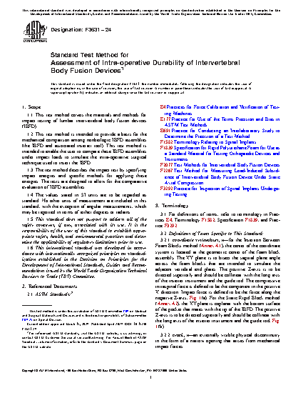 Standard Test Method for Assessment of Intra-operative Durability of Intervertebral Body Fusion Devices