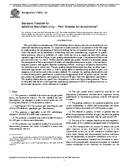 1.6 The part grade metric could be utilized by the engineering, procurement, non-destructive inspection, testing, qualification, or certification processes used for AM automotive parts.