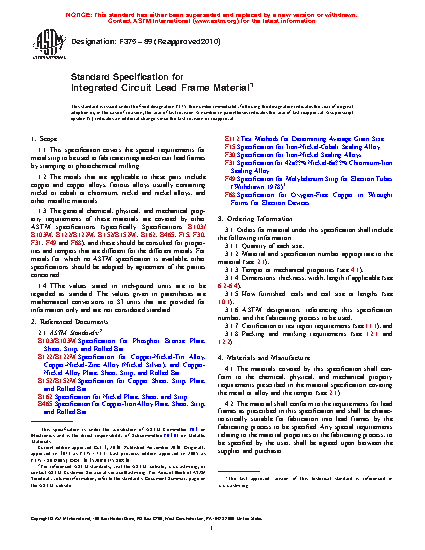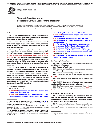 1.1 This specification covers the special requirements for metal strip to be used to fabricate integrated-circuit lead frames by stamping or photochemical milling.