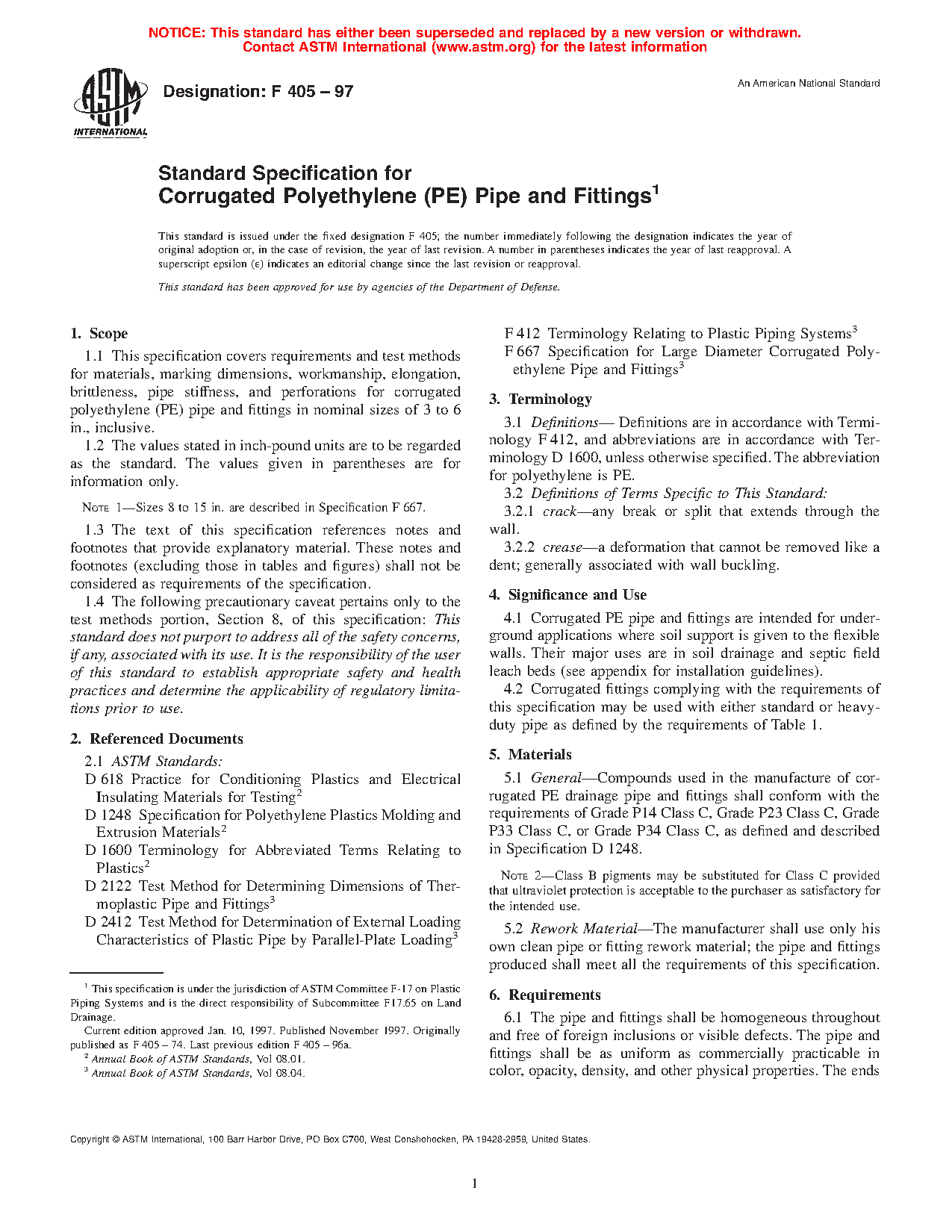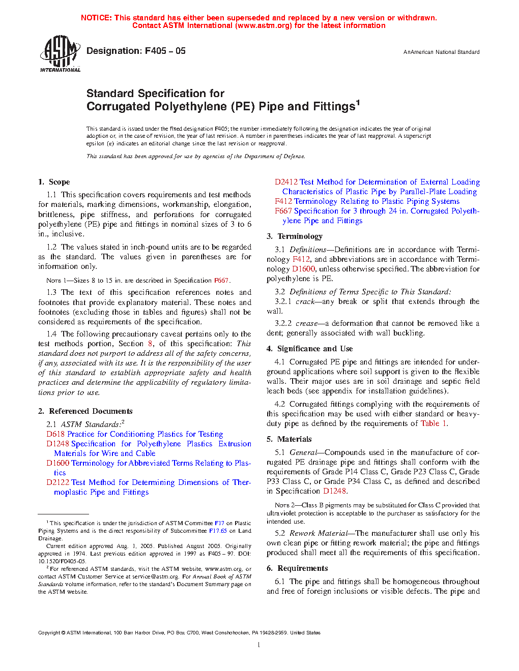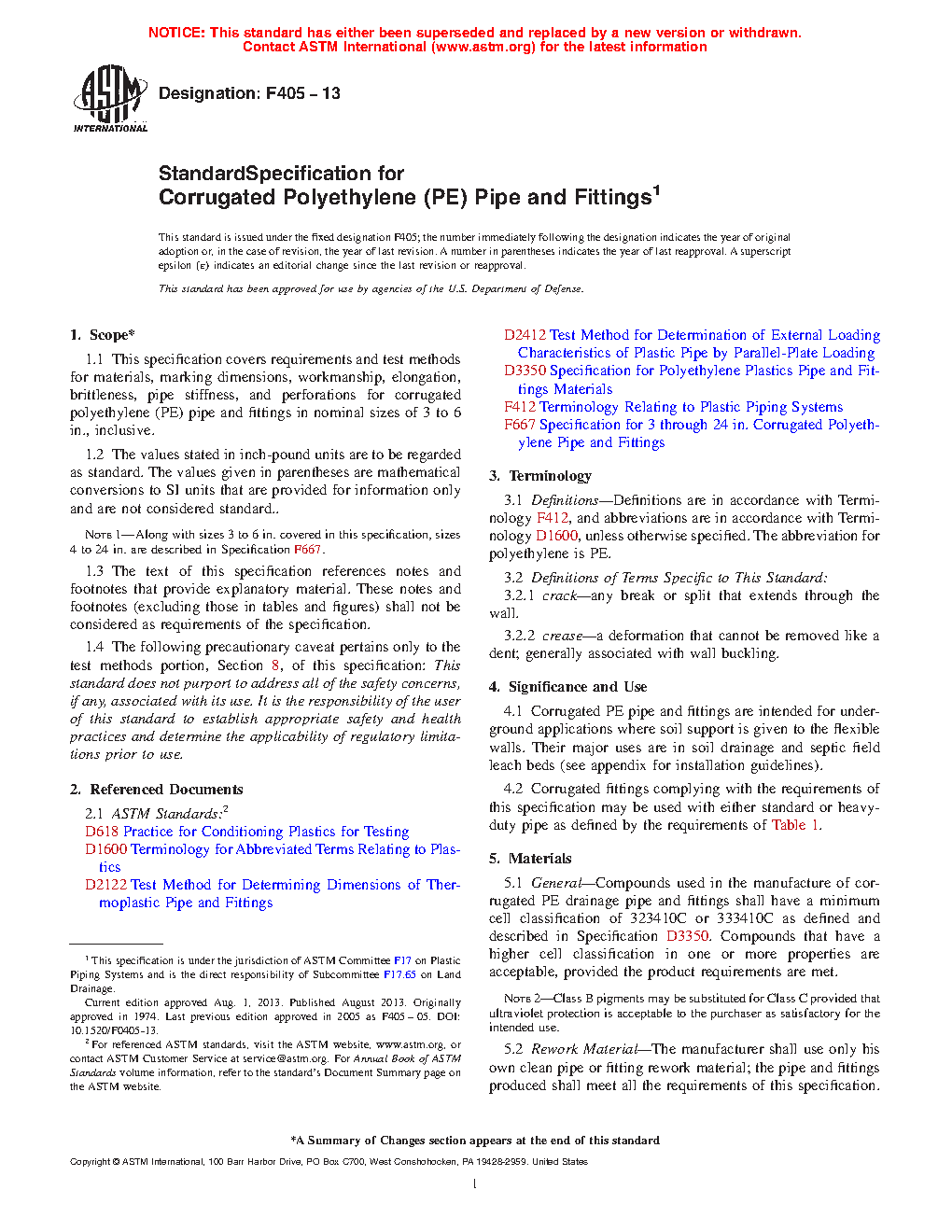 Standard Specification for Corrugated Polyethylene (PE) Tubing And Fittings