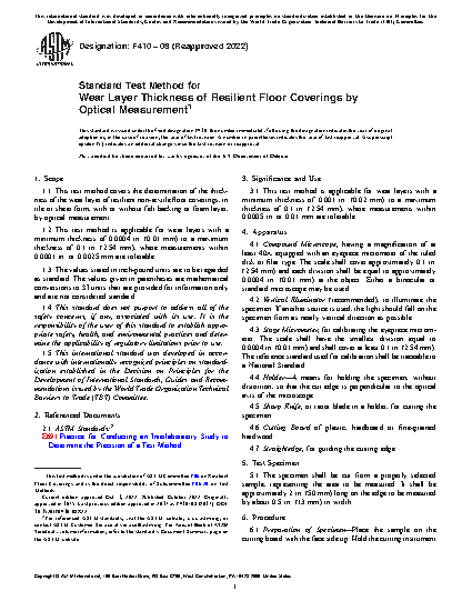 1.2 This test method is applicable for wear layers with a minimum thickness of 0.0004 in. (0.01 mm) to a maximum thickness of 0.1 in. (2.54 mm), where measurements within 0.0001 in. or 0.0025 mm are tolerable.