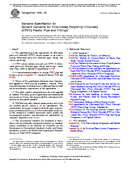 1.2 CPVC solvent cements are used with CPVC 41 chlorinated poly(vinyl chloride) pipe, tubing, and fittings, which meet Class 23447 as defined in Specification D1784.