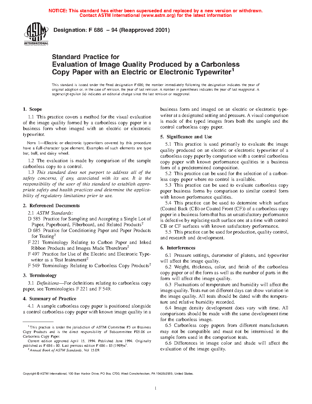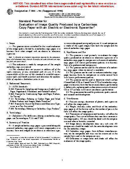 1.1 This practice covers a method for the visual evaluation of the image quality formed by a carbonless copy paper in a business form when imaged with an electric or electronic typewriter.