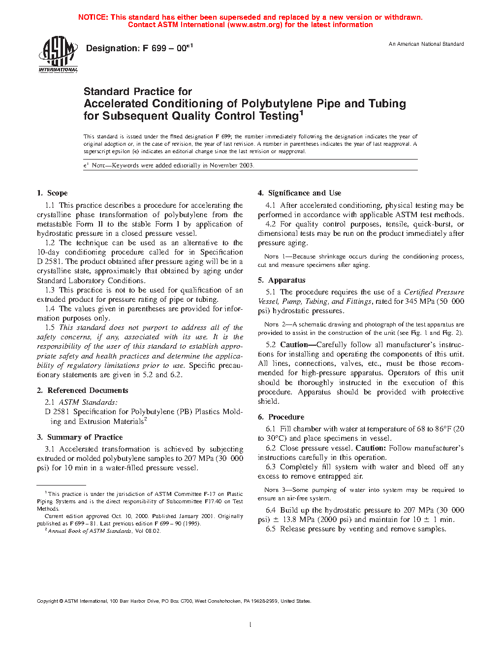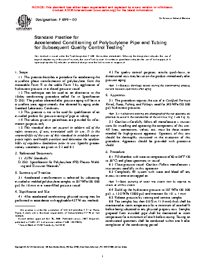 1.2 The technique can be used as an alternative to the 10-day conditioning procedure called for in Specification D 2581. The product obtained after pressure aging will be in a crystalline state, approximately that obtained by aging under Standard Laboratory Conditions.