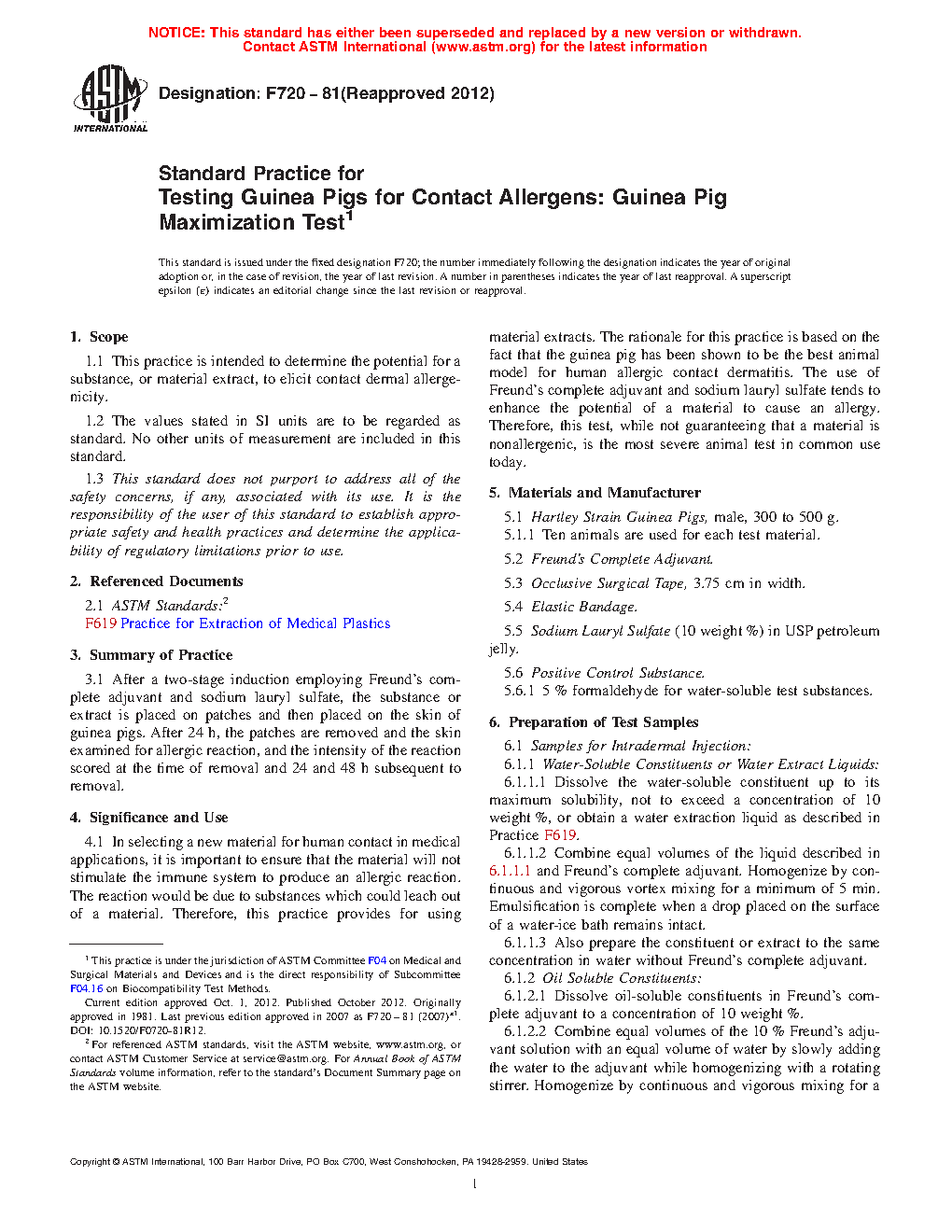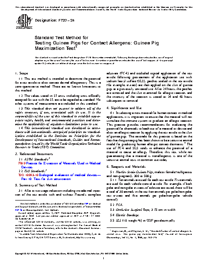 Standard Practice for Testing Guinea Pigs for Contact Allergens: Guinea Pig Maximization Test