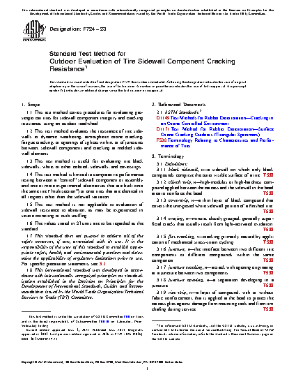 1.2 This test method evaluates the resistance of tire sidewalls to dynamic weathering, atmospheric ozone cracking, fatigue cracking, or openings of splices within, or of junctures between, sidewall components and cracking at molded sidewall elements.
