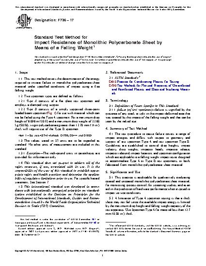 1.1 This test method covers the determination of the energy required to initiate failure in monolithic polycarbonate sheet material under specified conditions of impact using a free falling weight.