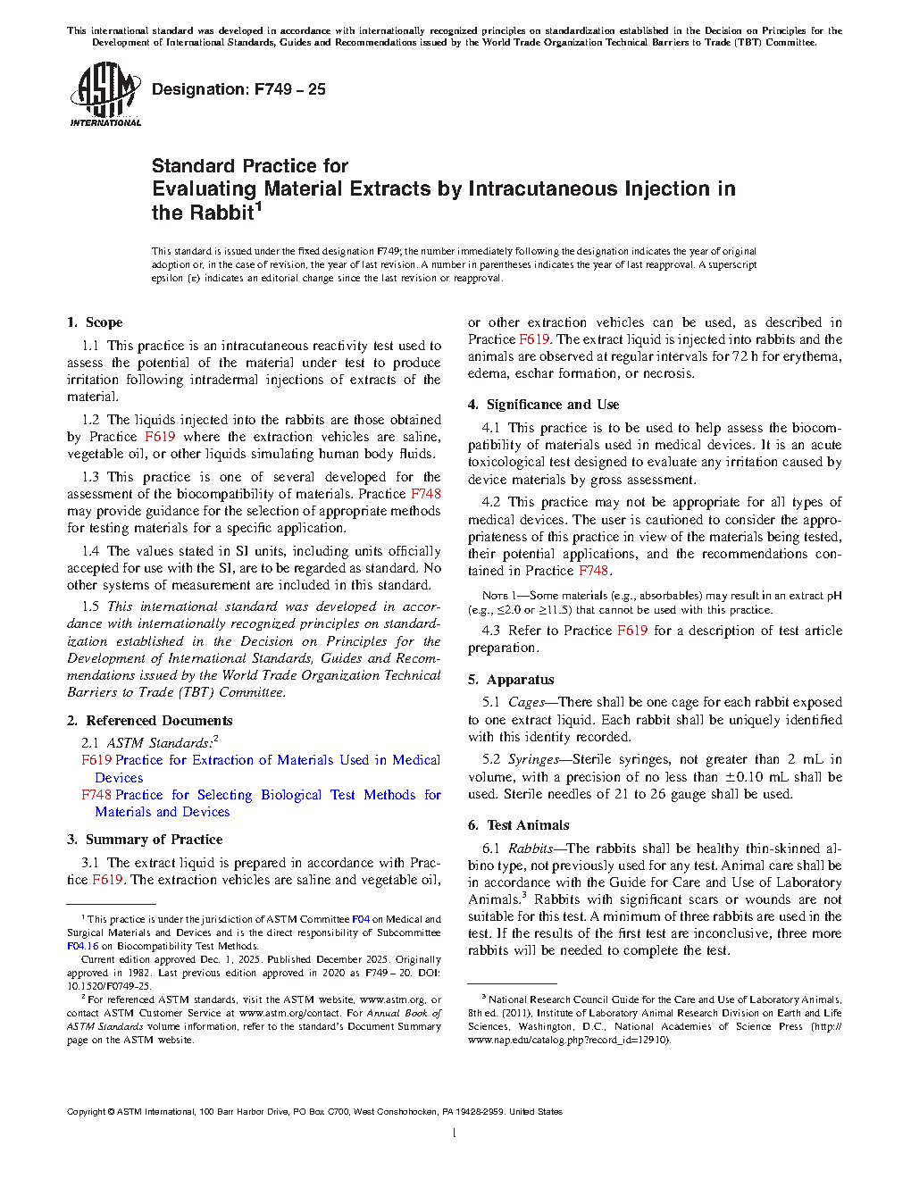 1.2 The liquids injected into the rabbits are those obtained by Practice F619 where the extraction vehicles are saline, vegetable oil, or other liquids simulating human body fluids.