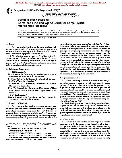 1.1 This test method applies to hermetic package leak testing to detect leaks of a broad spectrum in size with a minimum detection level equal to the sensitivity of the helium mass spectrometer equipment used in the test.