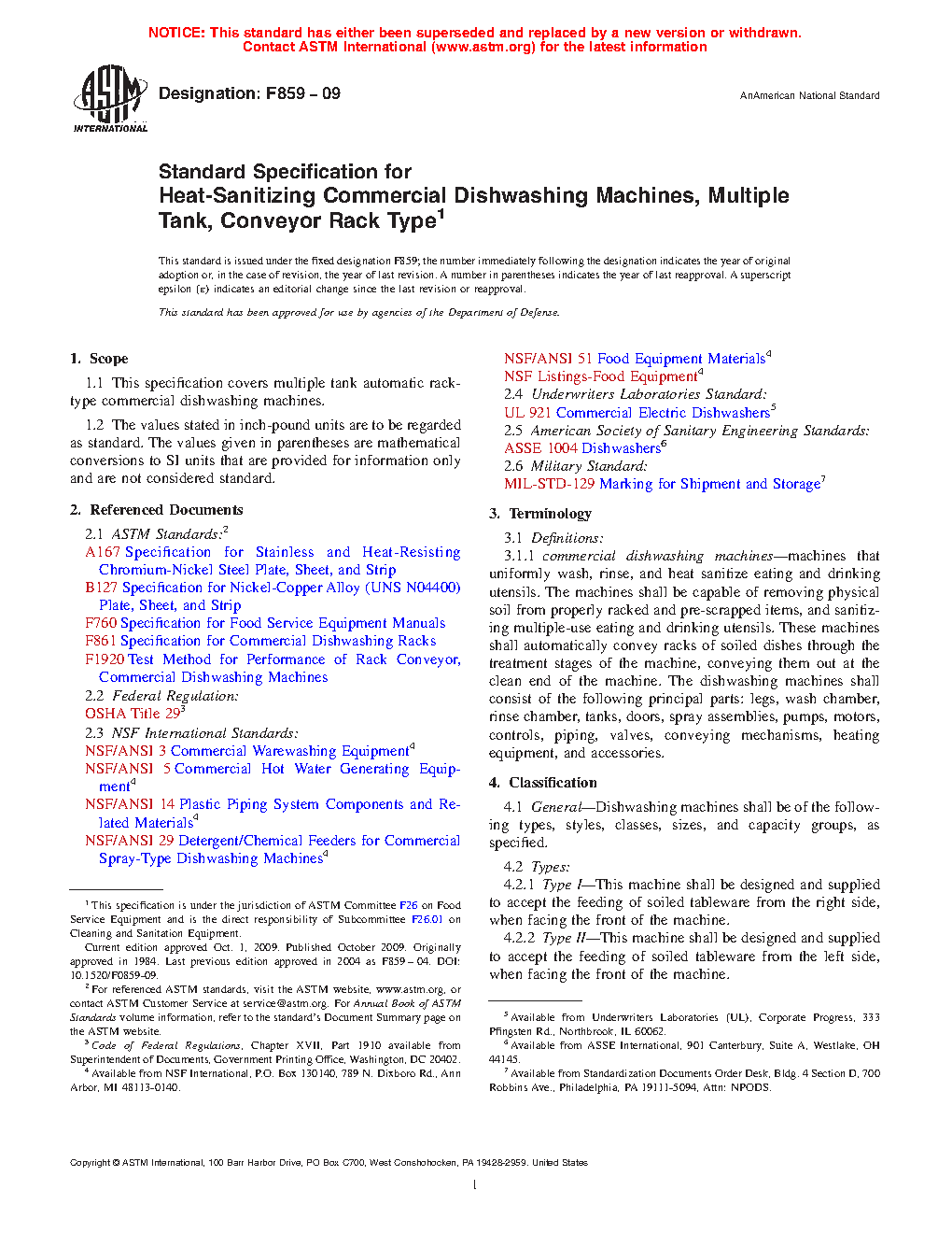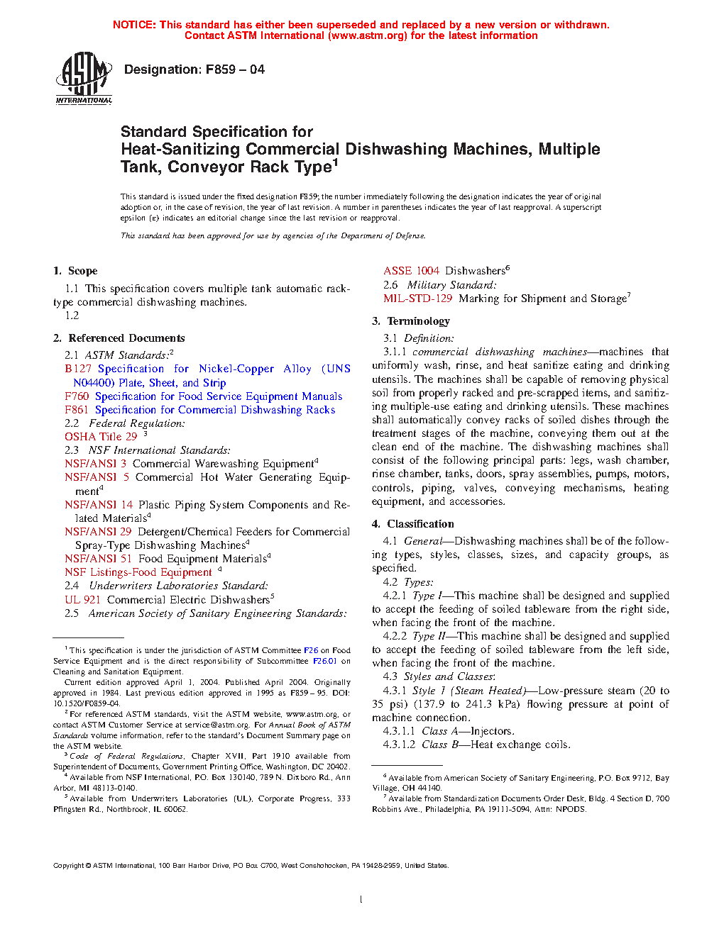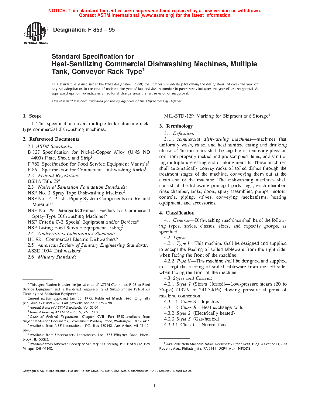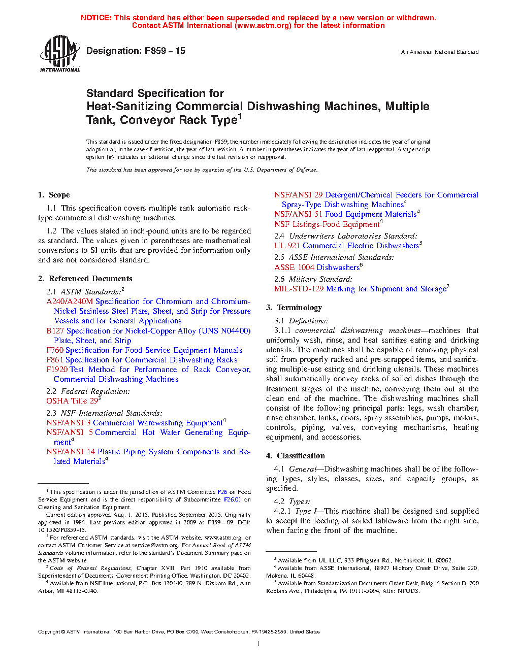 1.1 This specification covers multiple tank automatic rack-type commercial dishwashing machines.