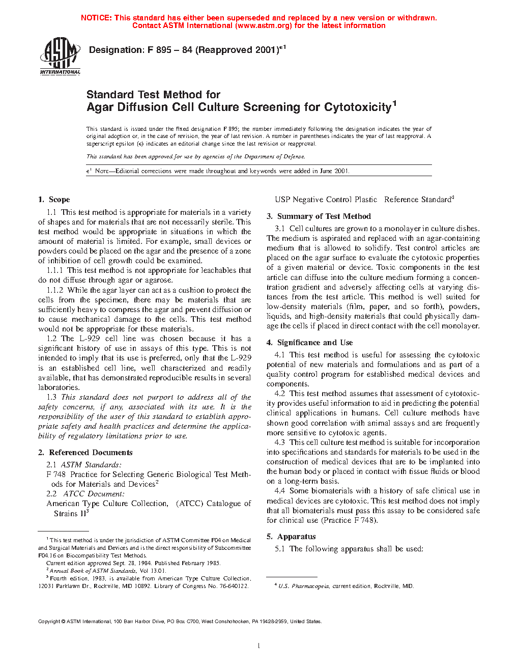 4.1 This test method is useful for assessing the cytotoxic potential of new materials and formulations and as part of a quality control program for established medical devices and components.