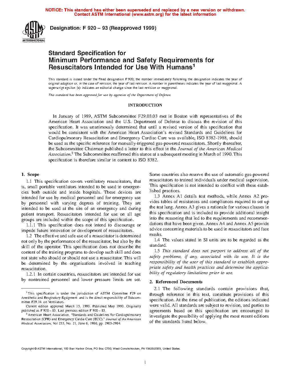1.1.1 This specification does not intend to discourage or impede future innovation or development of resuscitators.