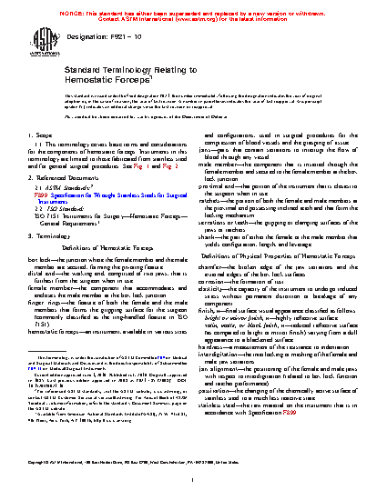 1.1 This terminology covers basic terms and considerations for the components of hemostatic forceps. Instruments in this terminology are limited to those fabricated from stainless steel and for general surgical procedures. See Figs. 1 and 2.