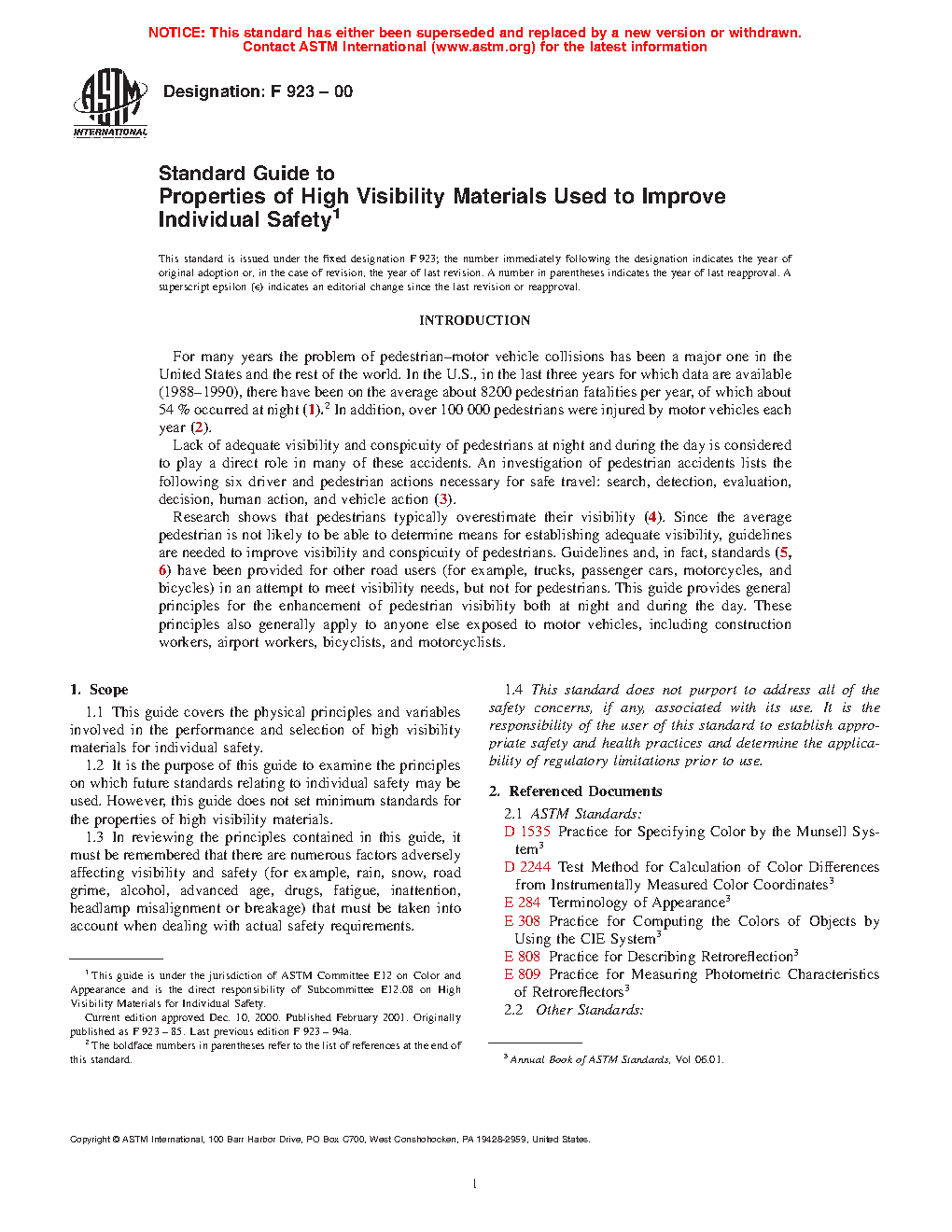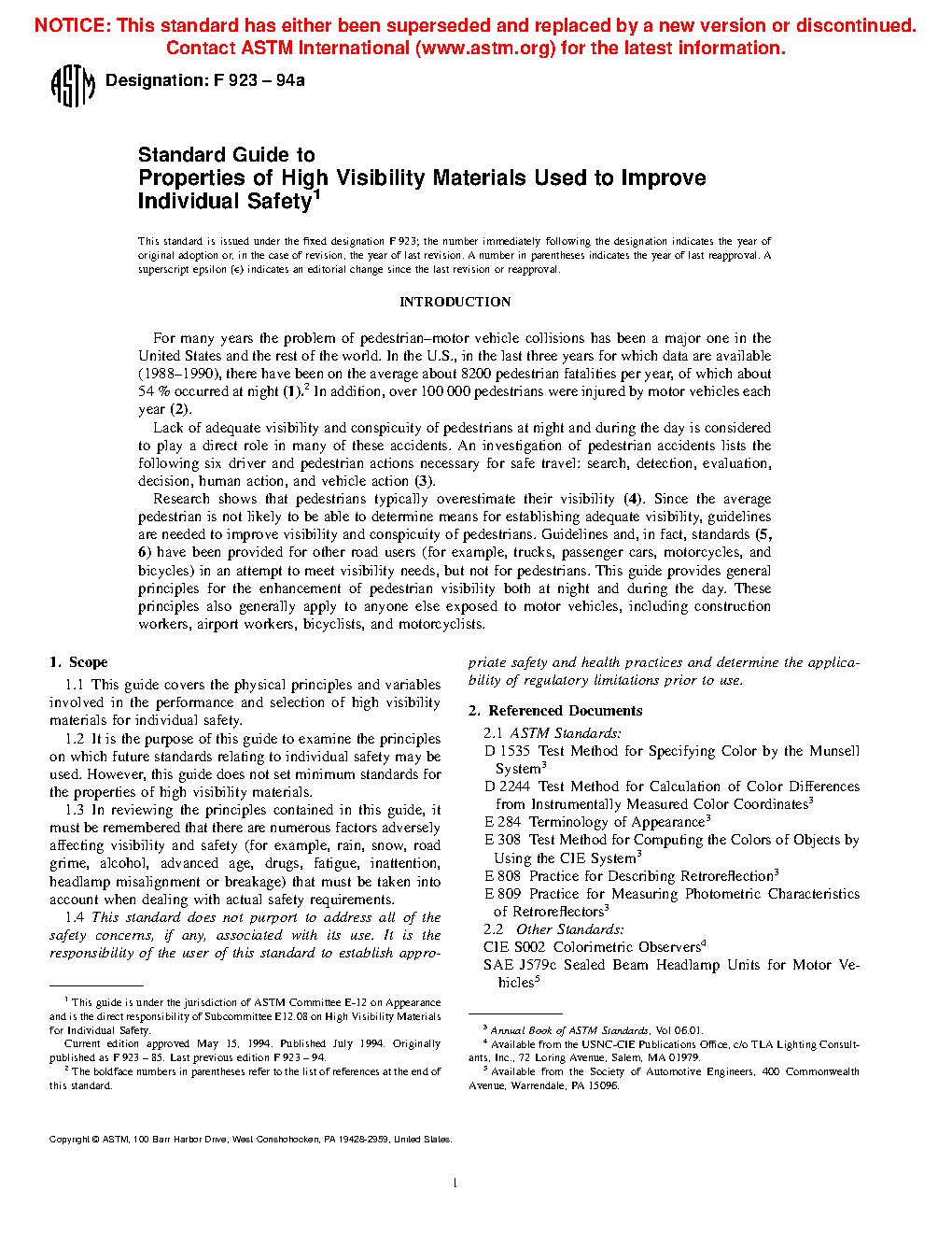 1.1 This guide covers the physical principles and variables involved in the performance and selection of high visibility materials for individual safety.