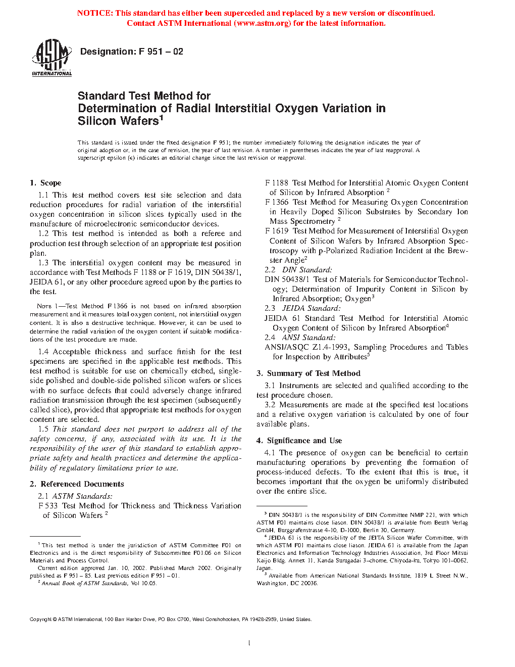 1.3 The interstitial oxygen content may be measured in accordance with Test Methods F 1188 or F 1619, DIN 50438/1, JEIDA 61, or any other procedure agreed upon by the parties to the test.
