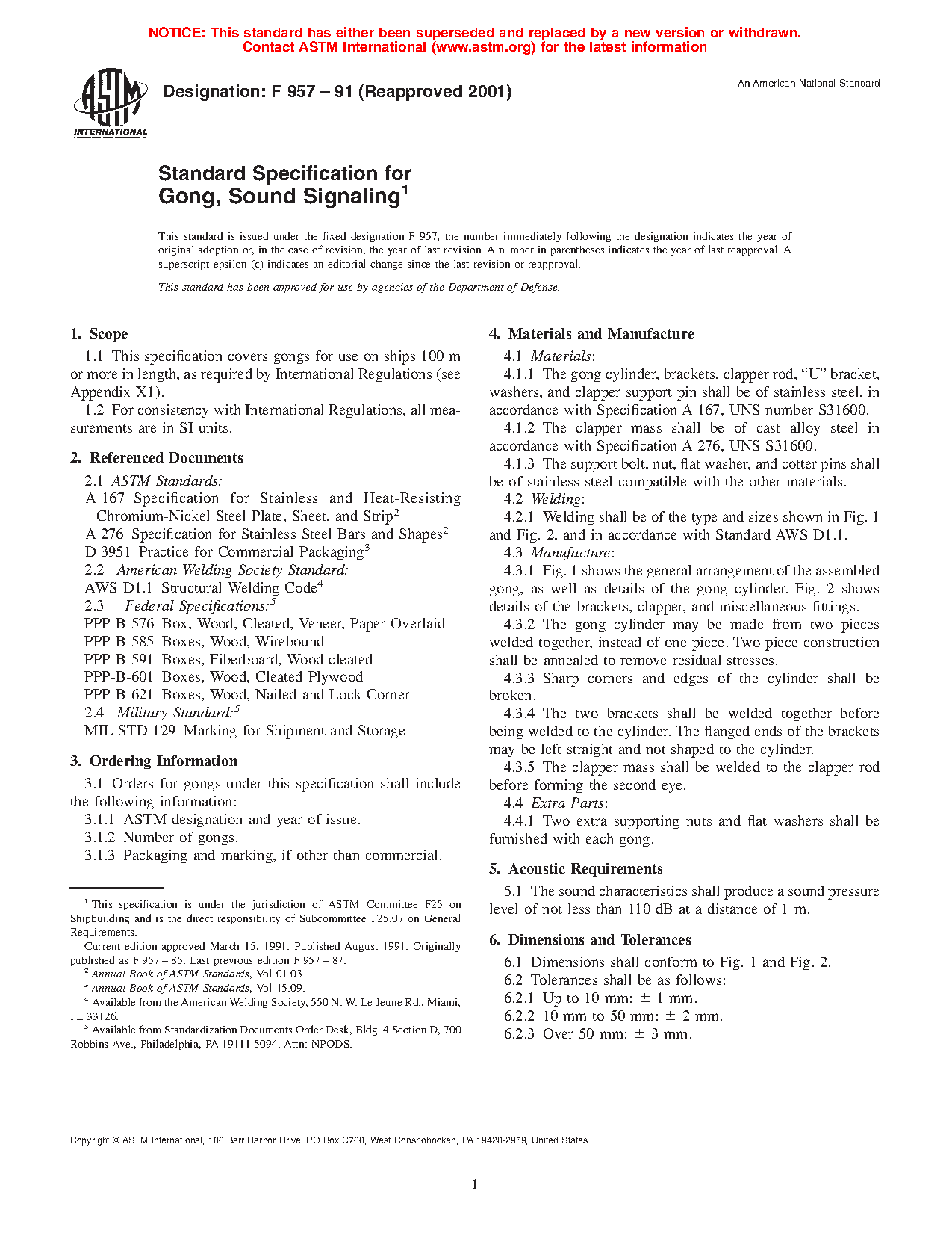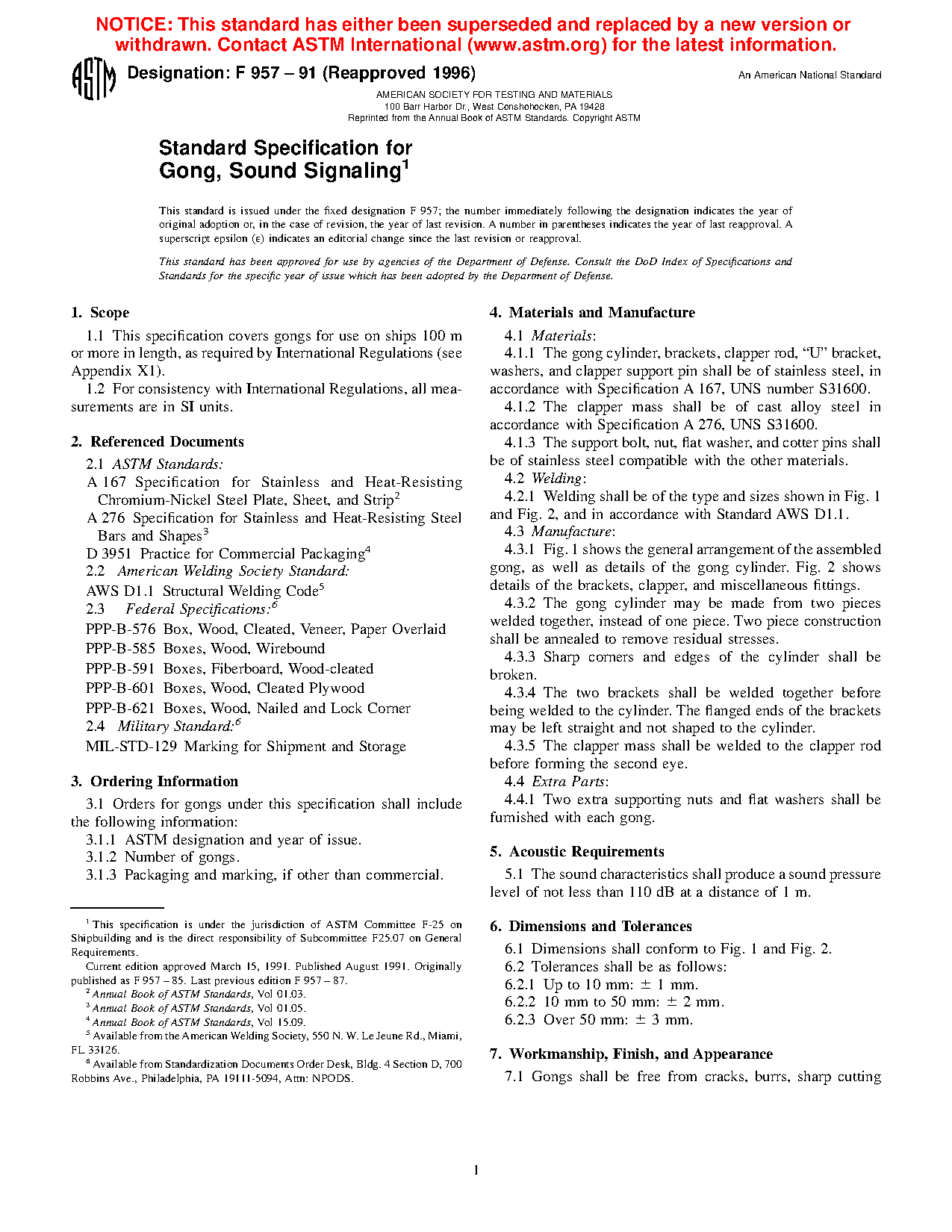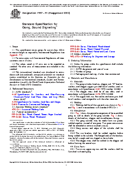 1.1 This specification covers gongs for use on ships 100 m or more in length, as required by International Regulations (see Appendix X1).