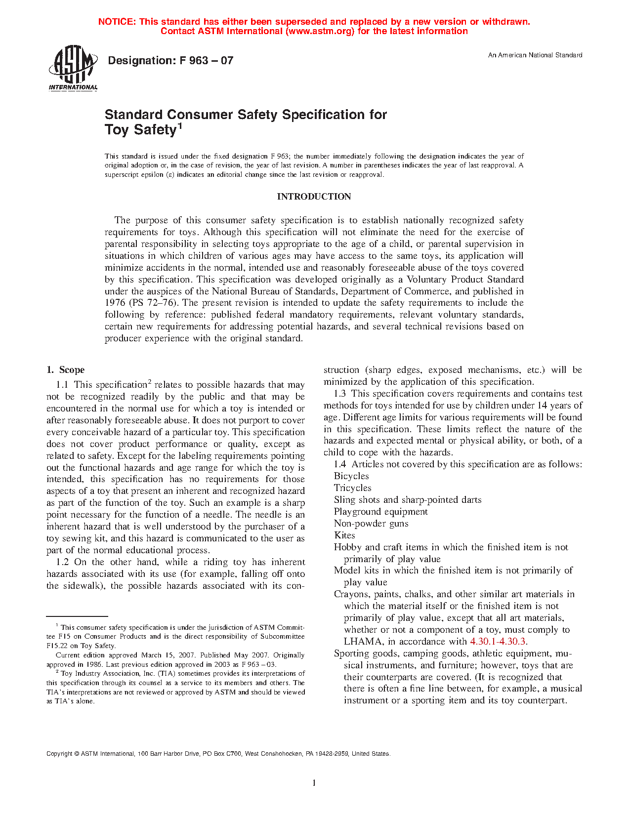 1.7 This consumer safety specification includes the following sections: