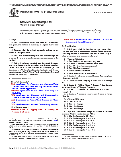 1.1 This specification covers the materials, dimensions, inscription, and methods of inscribing for shipboard valve label plates.