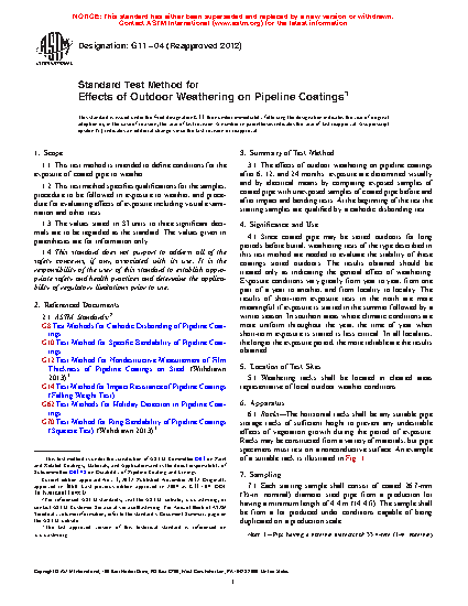 1.1 This practice is intended to define conditions for the exposure of coated metal pipe to weather.