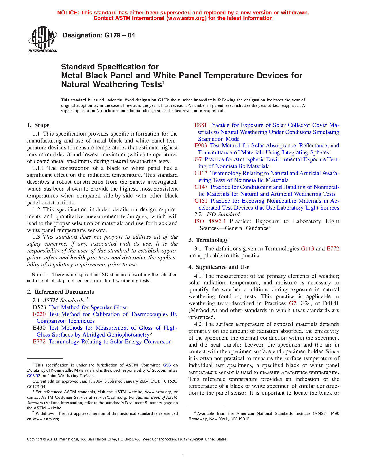 Note 1—There is no equivalent ISO standard describing the selection and use of black panel sensors for natural weathering tests.
