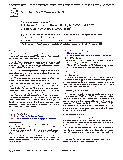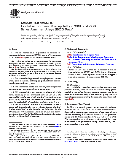 1.1 This test method covers a procedure for constant immersion exfoliation corrosion (EXCO) testing of high-strength 2XXX and 7XXX series aluminum alloys.