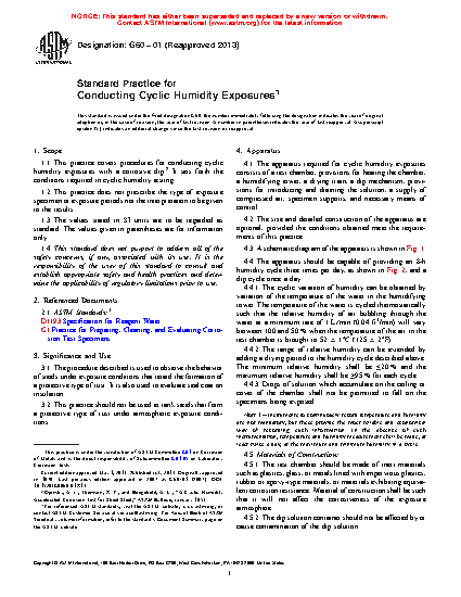 1.1 This practice covers procedures for conducting cyclic humidity exposures with a corrosive dip.2 It sets forth the conditions required in cyclic humidity testing.