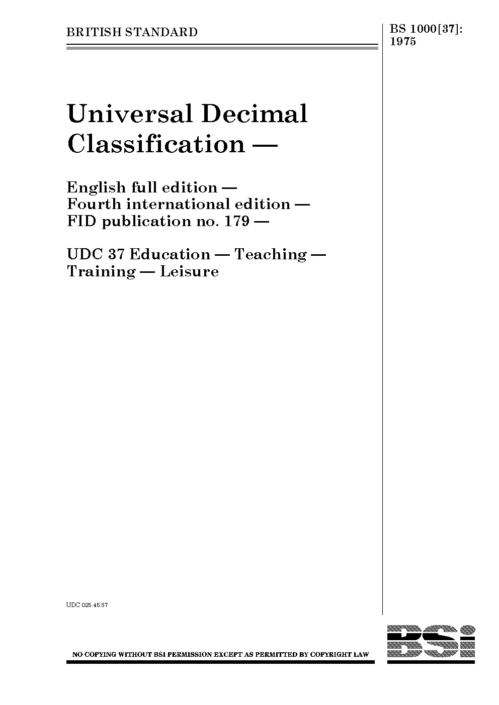Universal Decimal Classification. English full edition Education. Teaching. Training. Leisure