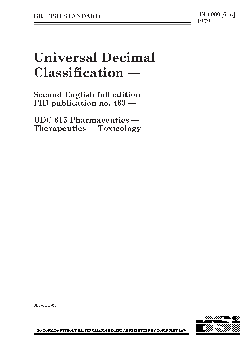 Universal Decimal Classification. English full edition Pharmaceutics. Therapeutics. Toxicology
