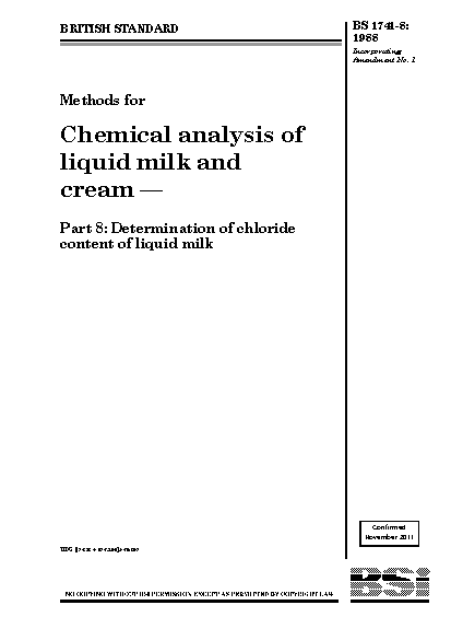 Methods for chemical analysis of liquid milk and cream Determination chloride content