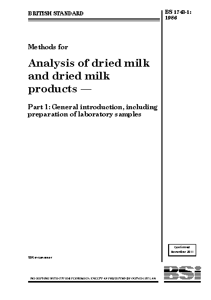 Methods for analysis of dried milk and products General introduction, including preparation laboratory samples