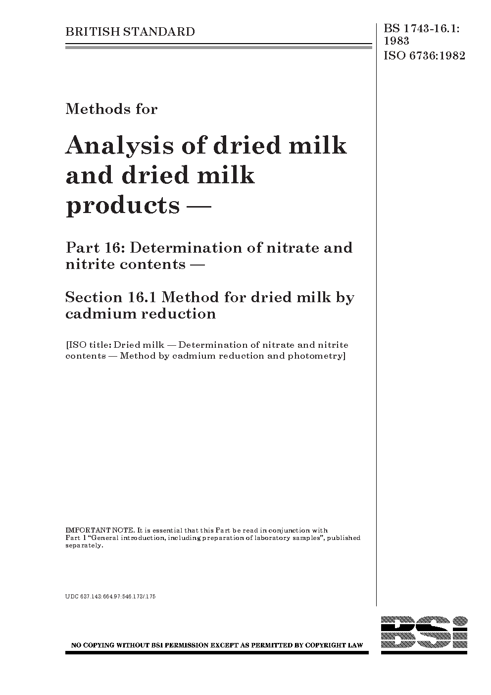 Methods for analysis of dried milk and products. Determination nitrate nitrite contents Method by cadmium reduction