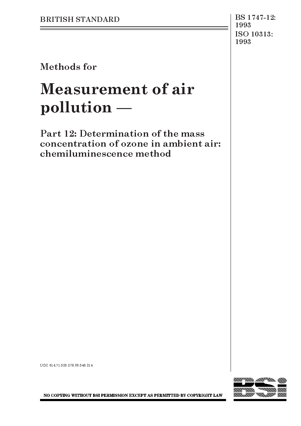 Methods for measurement of air pollution Determination the mass concentration ozone in ambient air: chemiluminescence method